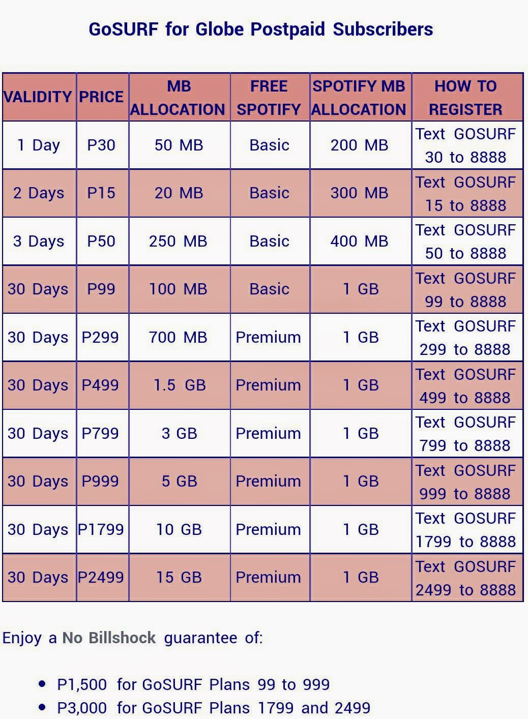 Globe Gosurf For Prepaid And Postpaid Plus Free Spotify Access Now Available Et Now